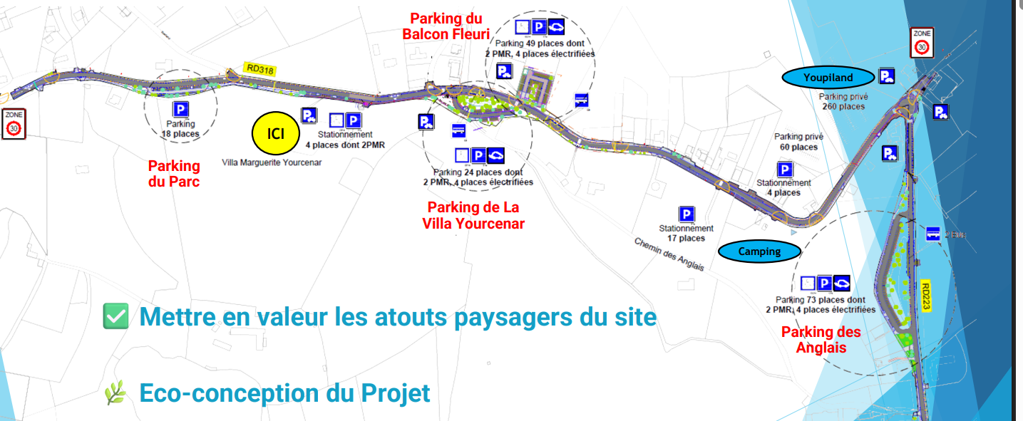 Het betreft ondermeer verfraaiingswerken ter hoogte van het Parc Marguerite Yourcenar en de aanleg van nieuwe ronde punten.